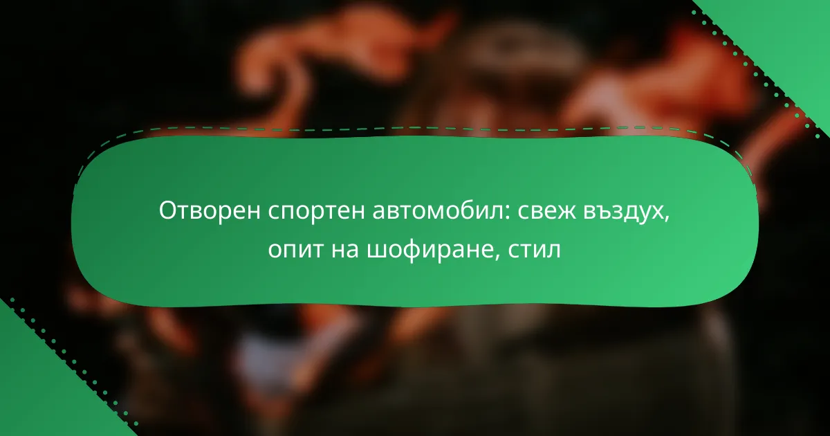 Отворените спортни автомобили предлагат уникално шофьорско изживяване, съчетавайки свеж въздух, динамика и стил. Те осигуряват не само удоволствие от шофирането, но и свързаност с околната среда, което ги прави привлекателен избор за любителите на автомобили.