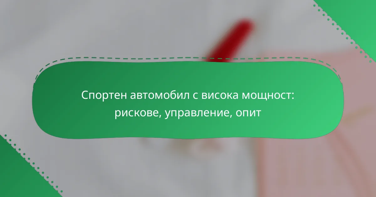 Управлението на спортен автомобил с висока мощност изисква специфични умения и внимание. Основните аспекти включват правилна техника на управление, избор на безопасни маршрути и редовна поддръжка на автомобила.
