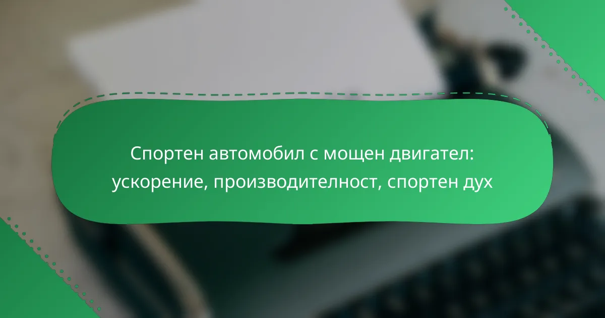 Техническите характеристики на спортния автомобил включват мощността на двигателя, ускорението и максималната скорост. Моделите с мощни двигатели, например, предлагат ускорение от 0 до 100 км/ч за под 5 секунди, което е ключов фактор за спортния дух.