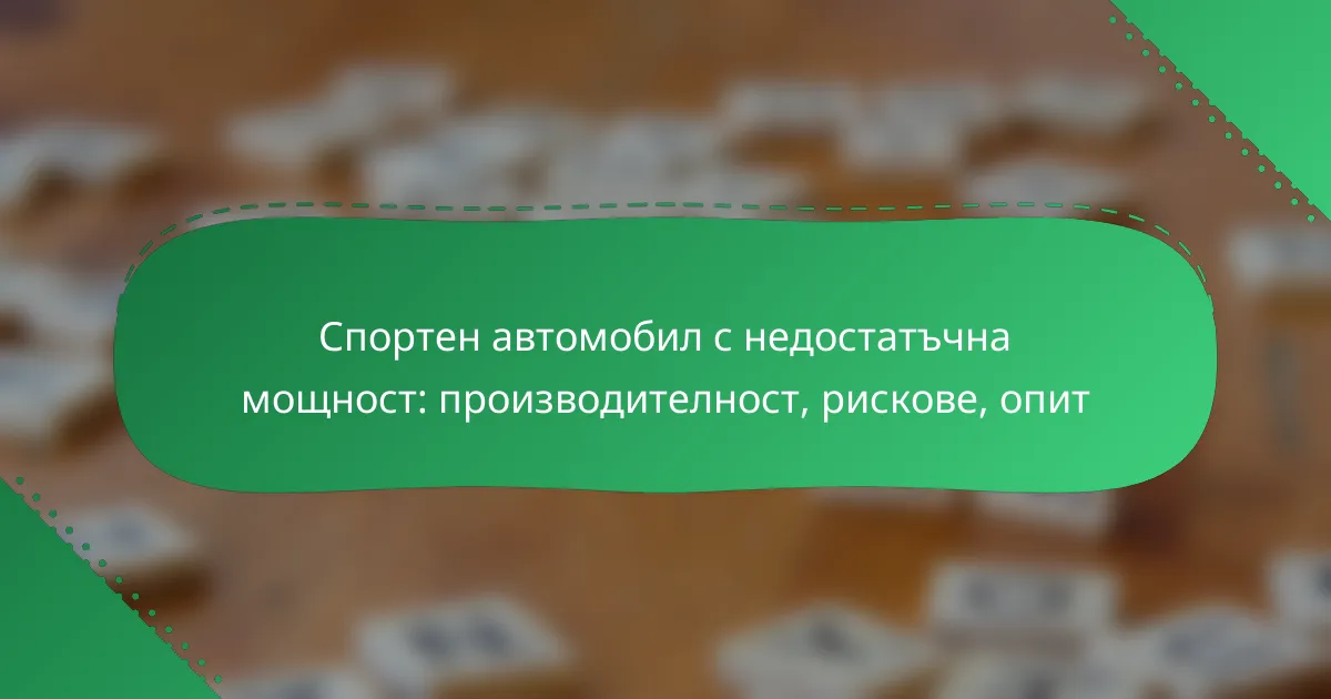Недостатъчната мощност на спортен автомобил може да доведе до различни рискове, които влияят на производителността и безопасността. Основните рискове включват намалена безопасност на пътя, увеличен разход на гориво и повишен риск от повреди.