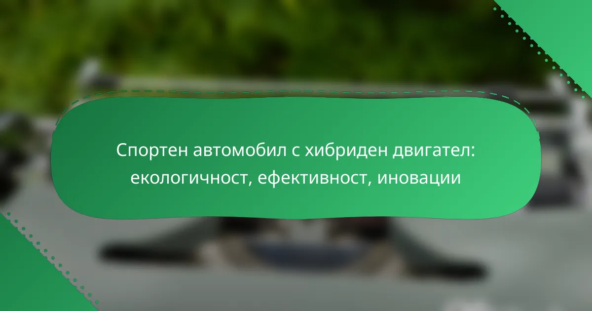 Хибридните спортни автомобили оказват положително влияние върху околната среда в България, като намаляват вредните емисии и повишават енергийната ефективност. Тези превозни средства комбинират бензинови и електрически двигатели, което води до по-нисък въглероден отпечатък и по-чист въздух.